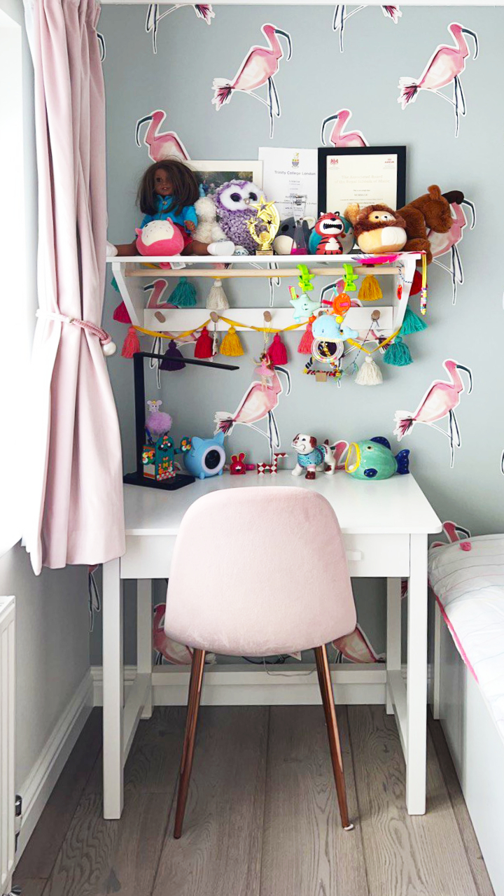 A playful London kids bedroom featuring flamingo‑inspired décor that brings whimsy and color to the space. Vibrant accents, fun patterns, and thoughtful layering of textures shape a cheerful and inviting room tailored for youthful energy and imagination.